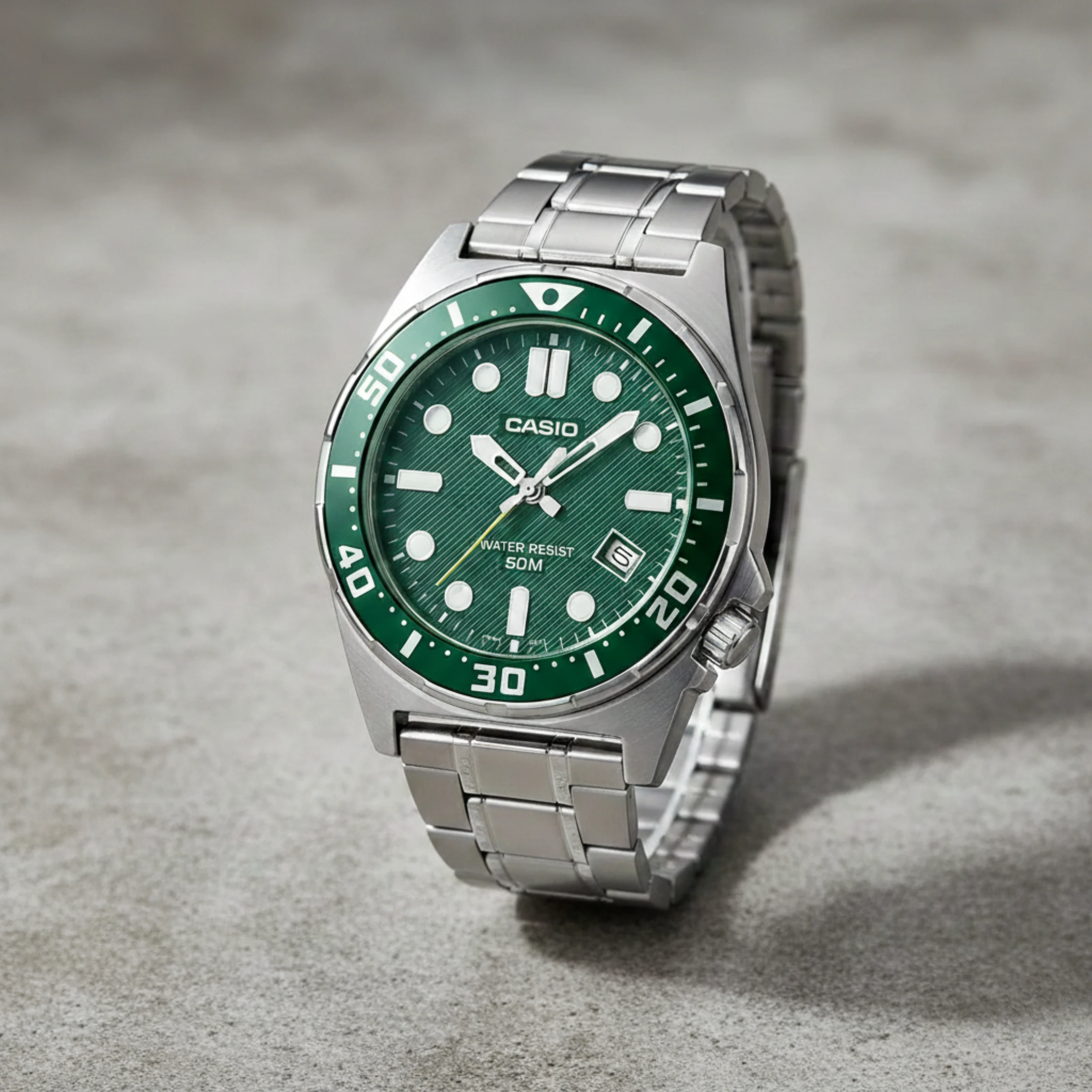 The Casio MTD-135D Men’s Watch combines sporty aesthetics with a refined stainless steel finish. Built for reliability and performance, this analog timepiece delivers precision, durability and modern style in one sleek package.